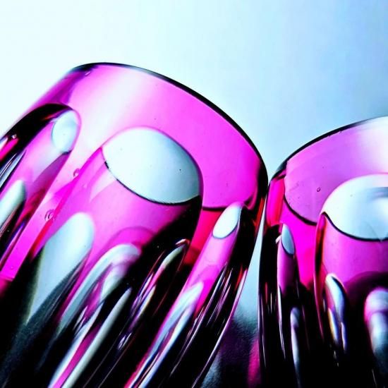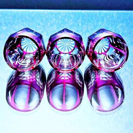 江戸切子を思わせる、明るいピンク味のある紫色の被せガラスが大変美しく